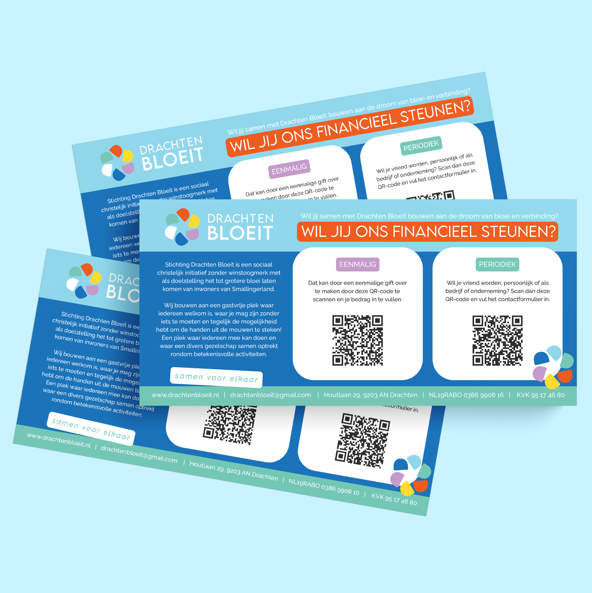 Vaak hebben klanten waar ik een logo voor mocht ontwerpen, ook vraag naar branding. Ik heb flyers, folders, kaarten en dergelijke mogen maken. Ook boekomslagen en lay-outs van websites heb ik vormgeven.